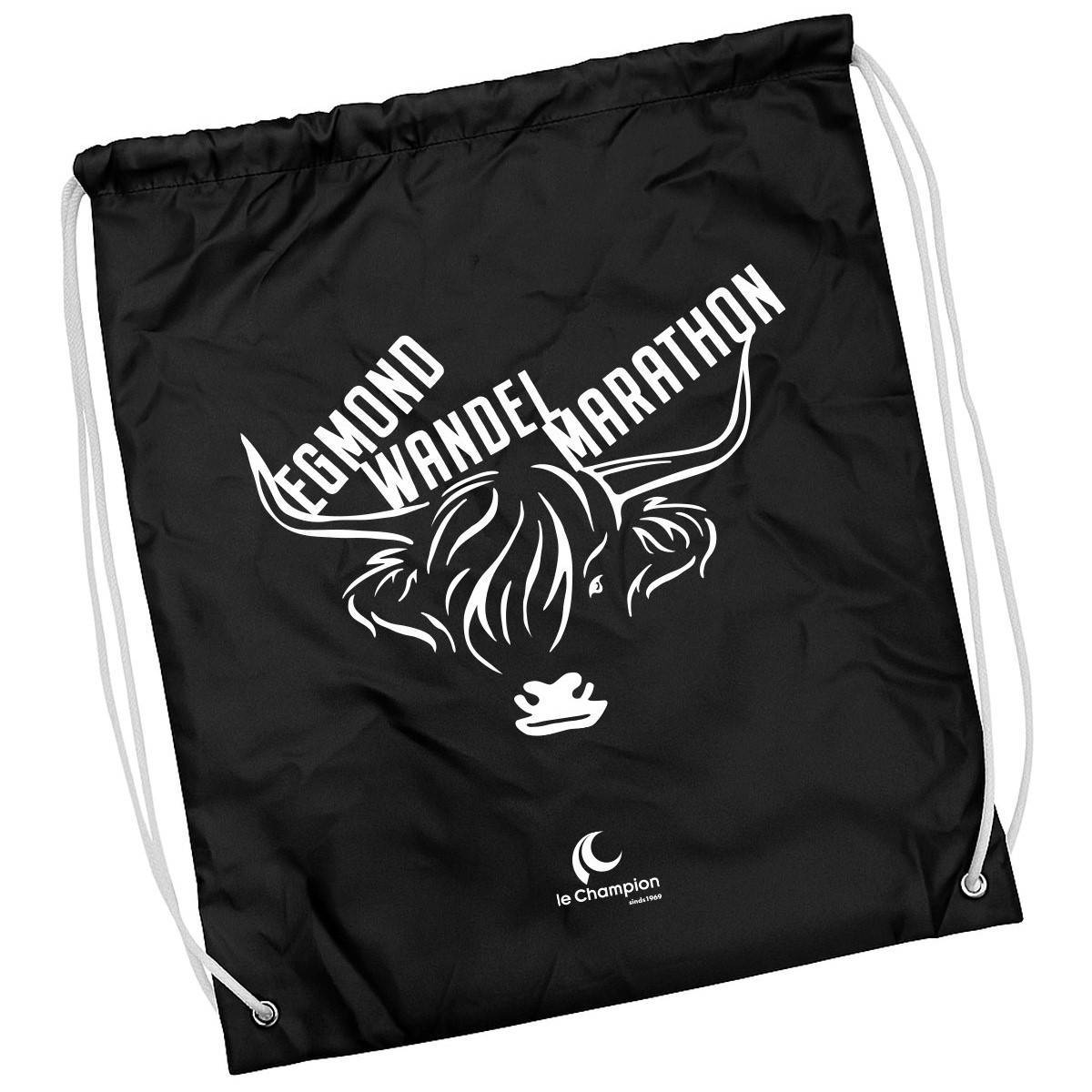 De tas is uitgevoerd in klassiek zwart met witte koorden en voorzien van het herkenbare Egmond Wandel Marathon-logo. Of je 'm gebruikt voor je drinkfles, je muts of een tussendoortje voor onderweg, deze gymbag is jouw perfecte metgezel.
