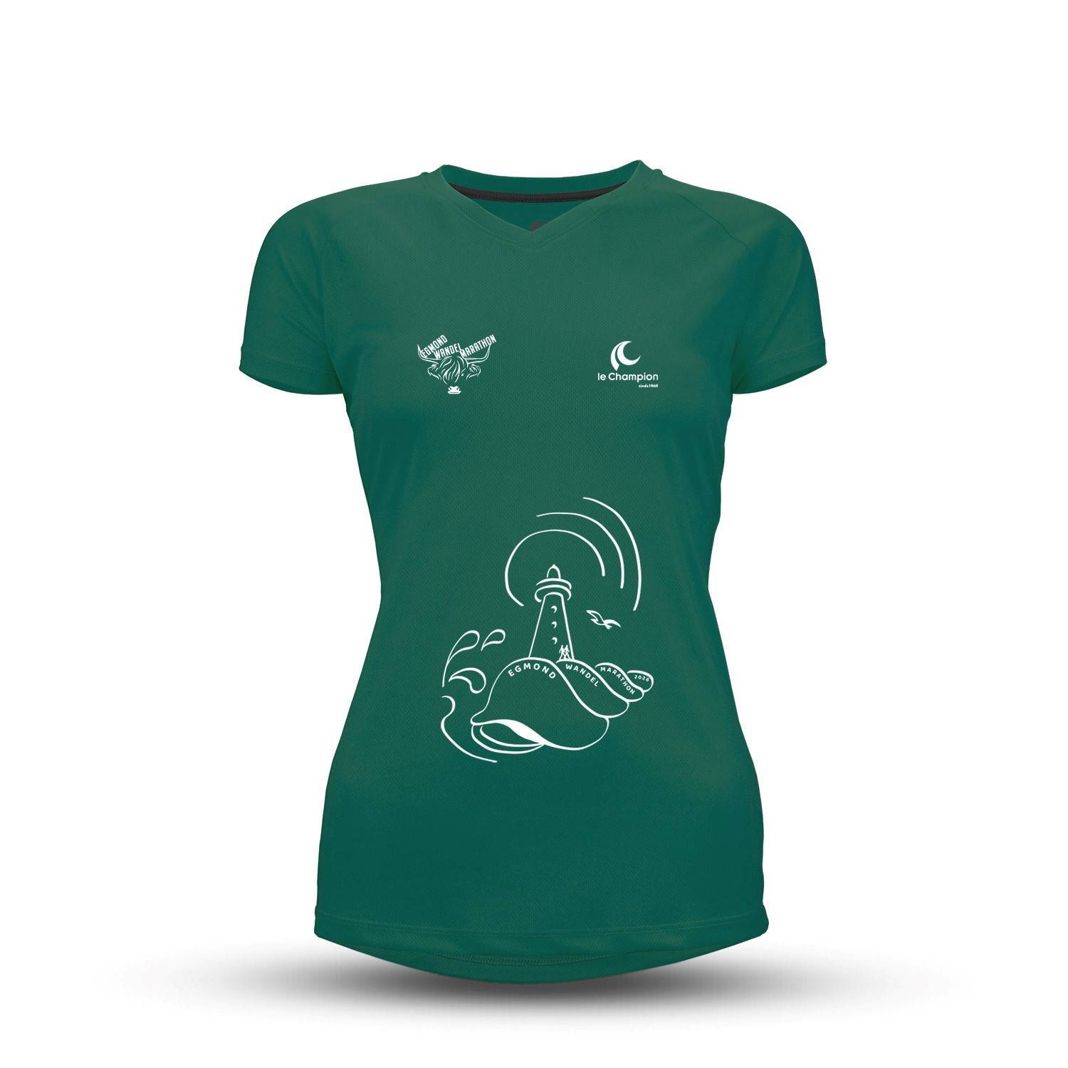 Ook voor de 21e editie van de Egmond Wandel Marathon hebben wij een uniek en duurzaam wandelshirt ontworpen. Het groene shirt is gemaakt van gerecyclede petflessen en heeft een prachtige illustratie van de vuurtoren van Egmond aan Zee, een schelp en de golven.